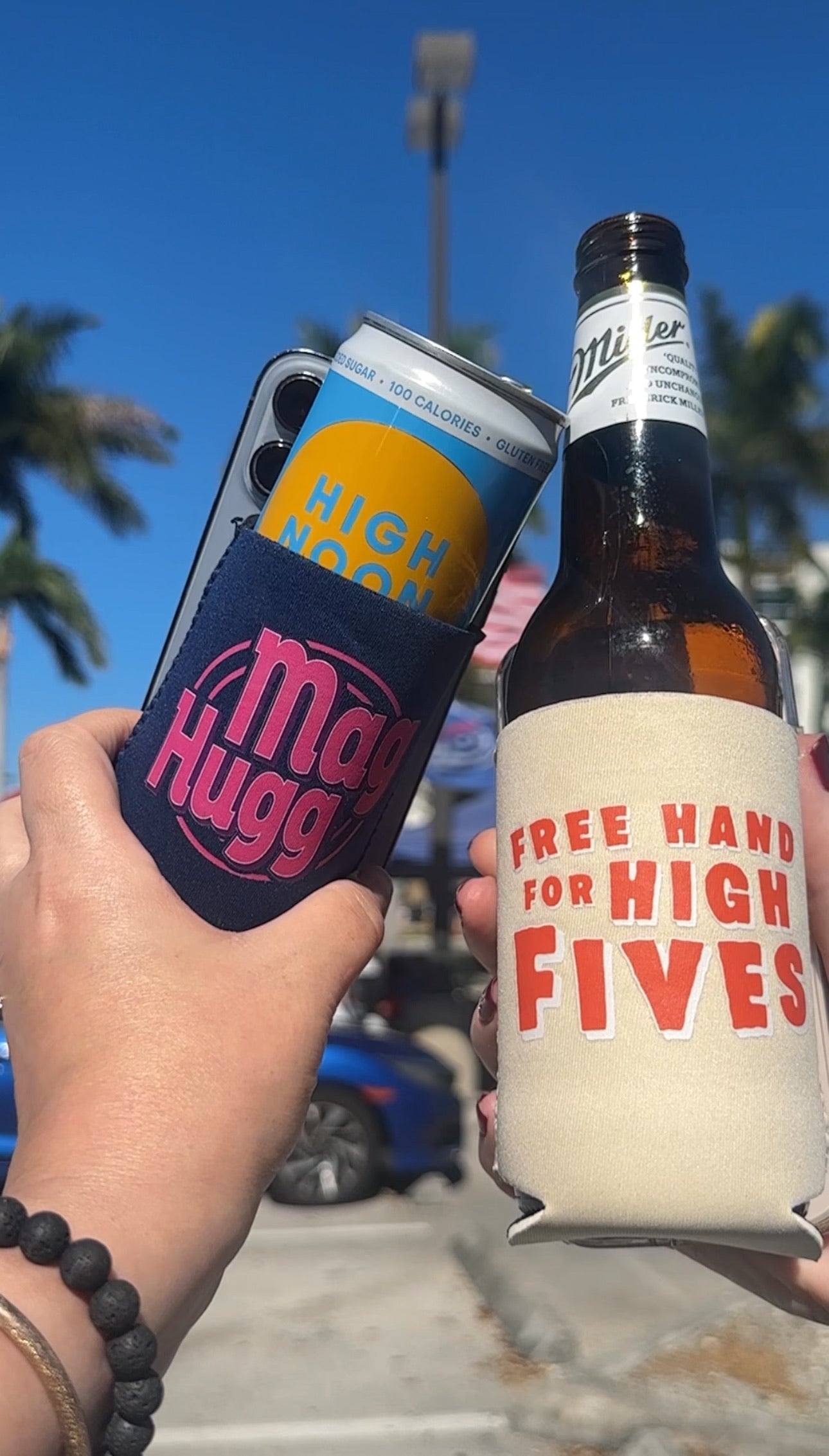 This genius neoprene can cooler with a built-in MagSafe magnetic ring lets you hold both your drink and your phone with just one hand—leaving the other free for life’s more important tasks (like taking group photos, high-fiving, flipping the bird, or petting dogs). With a magnetic grip strong enough to hold a full can the MagHugg keeps your beverage close and your phone even closer. It’s the perfect wingman for BBQs, tailgates, festivals, or court dates. Who says you can’t have it all?